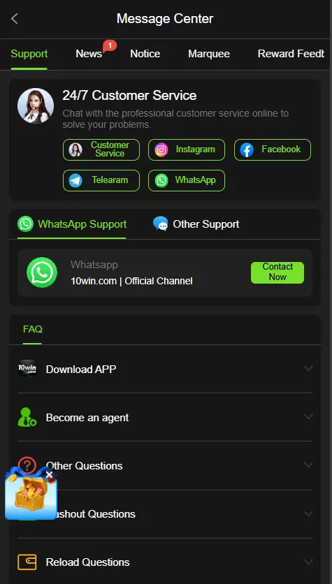 If you forget your 10Win login password, use the password recovery option inside the app. Follow the instructions sent to your registered mobile number to reset your password and regain access to your account.