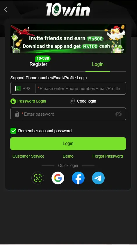 No email address or lengthy forms are required, making 10Win Pakistan registration faster than most online gaming platforms.
